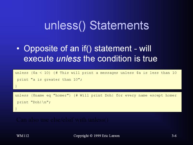 Perl: unless() Statements