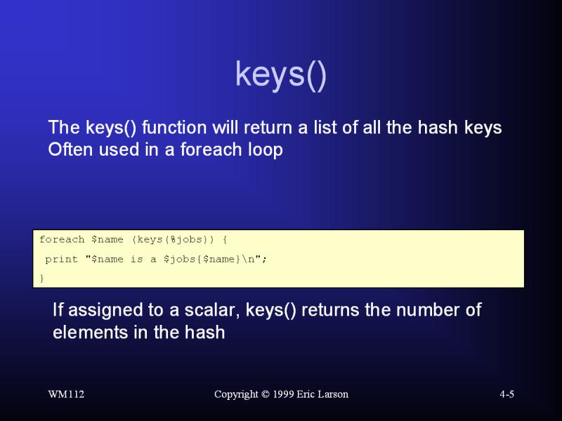 Perl: keys()