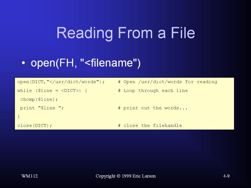 Perl: Reading From a File