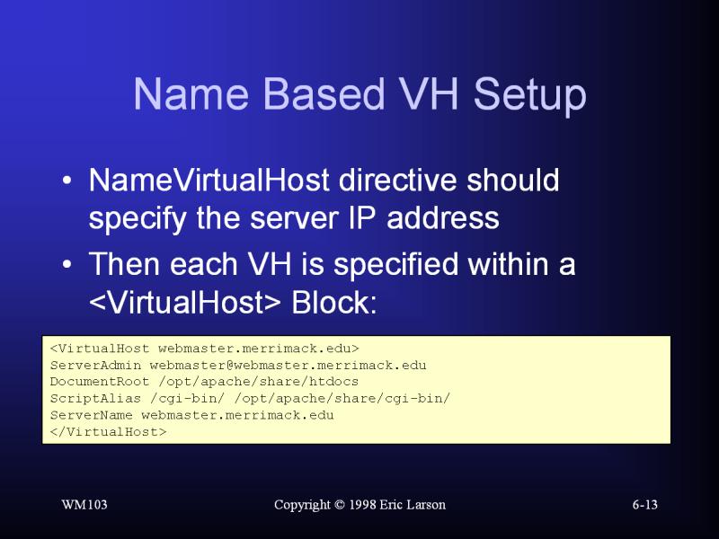Web Server Administration: Name Based VH Setup